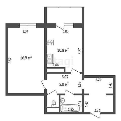 - Общая площадь43 м²